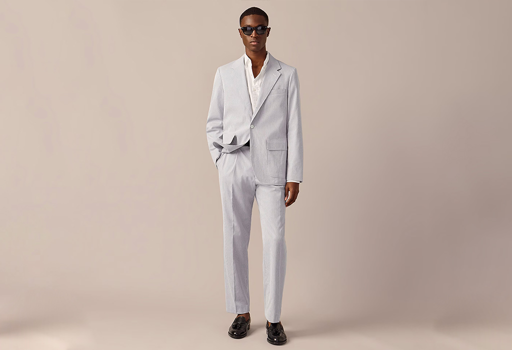 Alex Mill has actually been making something of a name for itself recently, and their summertime offerings are absolutely nothing except great. That includes their Mill Sports Jacket and Requirement Pleated Pant, each in matching seersucker.